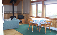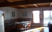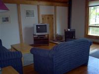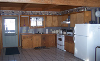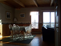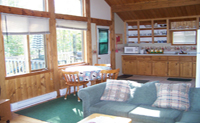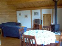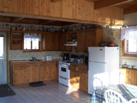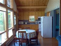 chalet is a single story chalet with cathedral ceilings which has a large kitchen