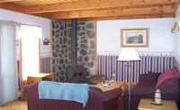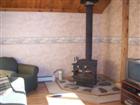 a full size kitchen, living room, wood stove, deck, propane barbeque and outdoor
