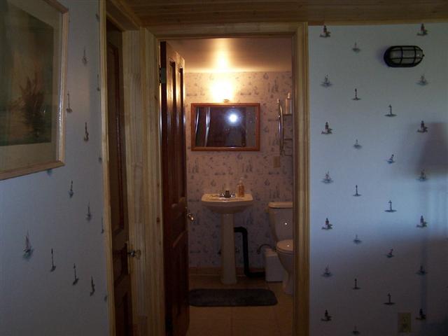 double beds in the back bedroom. It has a half bath upstairs and a full bath downstairs.